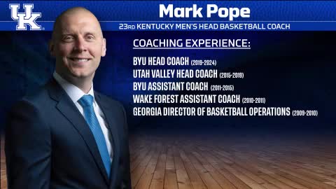 .@CoachMarkPope not only brings an impressive record in nine years as a head coach, but also a love of the @universityofky and a complete understanding of what our @kentuckymbb program means to the people of our state. https://t.co/EpQWdtPCL3
