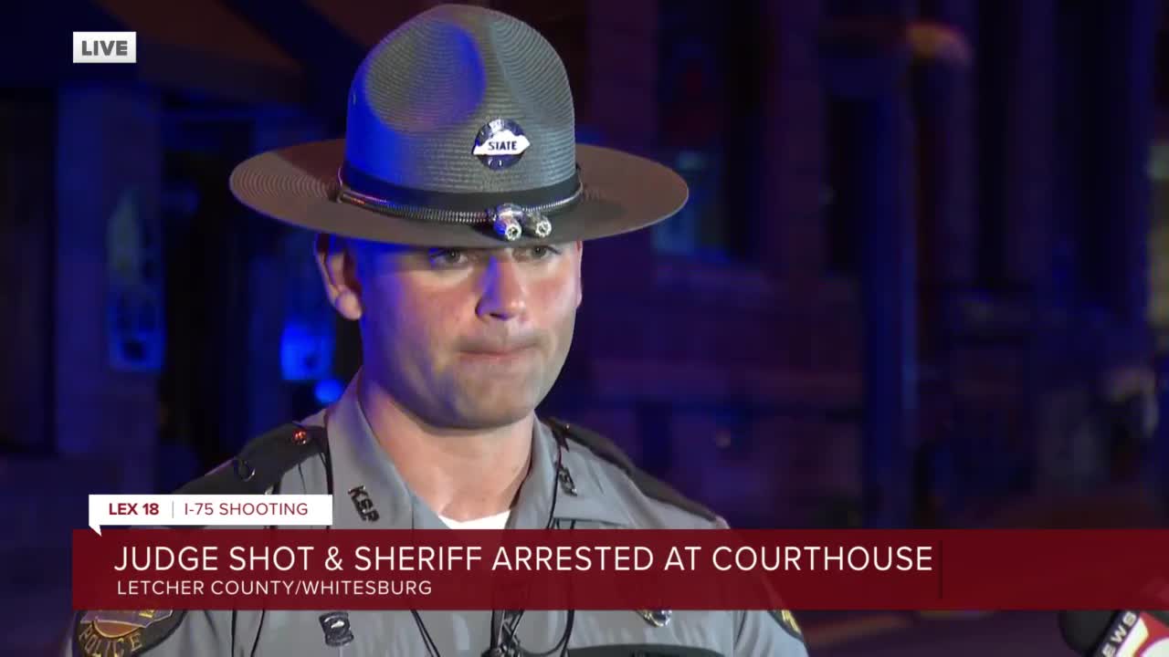 KSP Trooper Matt Gayheart said in a press conference on Thursday evening that multiple agencies responded to shots fired at the Letcher County Courthouse at approximately 3:00 p.m. on Thursday.