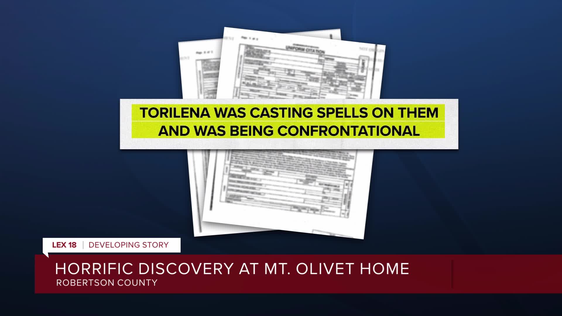 According to a citation, the worker told police he saw Trudy Fields alive the day before, with her 32-year-old daughter Torilena Fields. He said Torilena was "casting spells on them and being confrontational."